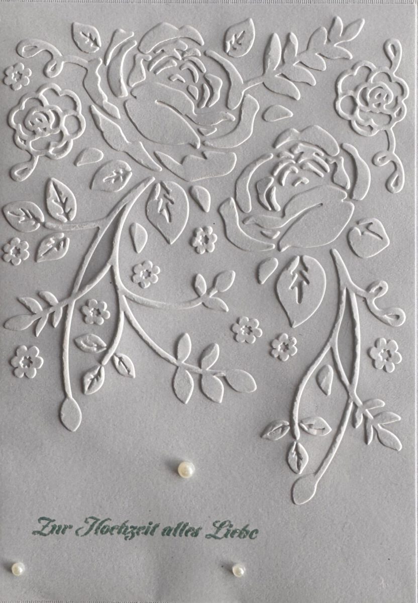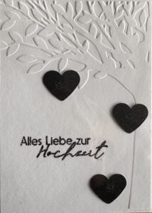 Prägekarte weiß, Baum, schwarze Herzen, "Alles Liebe zur Hochzeit", weißer Umschlag