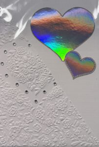 Prägekarte mit Blumen, Silberne Sterne,